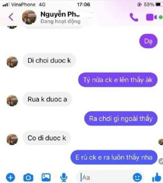 Những dòng tin nhắn giữa thầy giáo Ph. với cô L. làm dậy sóng dư luận.
