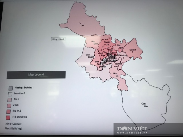 Hiện 20/22 quận huyện của thành phố đã có ca bệnh, trừ quận 11 và huyện Cần Giờ, trong đó nhiều địa phương có số ca bệnh lớn như Gò Vấp (52 ca), quận 12 (23 ca), quận Bình Thạnh (22 ca), quận Tân Phú (22 ca), quận Tân Bình (22 ca). "Các quận này thuộc nhóm địa phương có mật độ dân số cao của thành phố, là yếu tố nguy cơ cho dịch bệnh tiếp tục lây lan trong cộng đồng nếu không có biện pháp khoanh vùng dập dịch triệt để", ông Bỉnh nhấn mạnh.