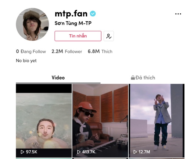 Cụ thể hơn, tài khoản TikTok của Sơn Tùng M-TP có được đặt tên là "mtp.fan" và có dấu tick xanh. Đây cũng là tên đường link page chính chủ M-TP trên Facebook của Sơn Tùng M-TP. Kênh TikTok này được lập nên từ năm 2018 và cho đến nay đã có hơn 2,2 triệu người follow.