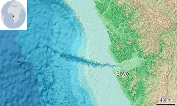 Vụ lở đất xảy ra ở vực sâu nối liền với cửa sông Congo. Ảnh: GEBCO Grid.