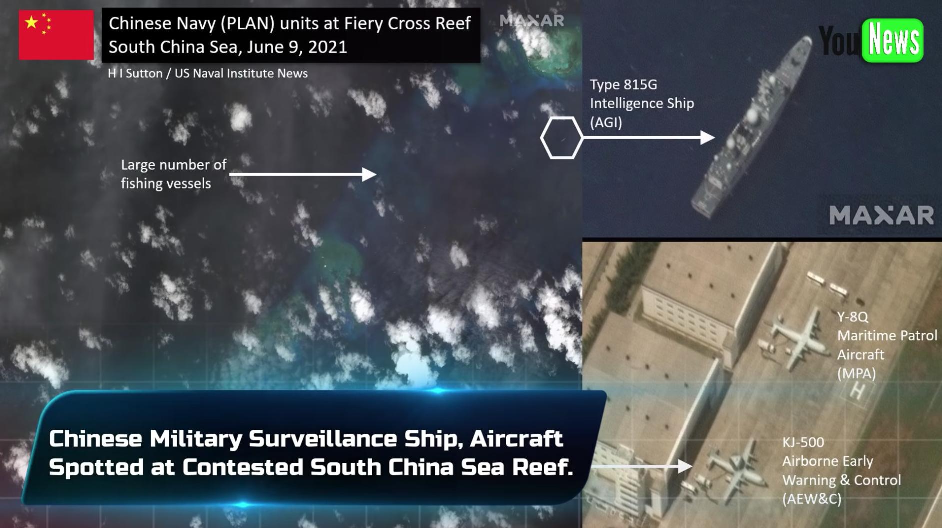 Dựa trên hình ảnh vệ tinh của hãng Mazar, trang web quân sự USNI của Hoa Kỳ vào thứ Sáu, 11 tháng 6, cho biết một tàu do thám Type-815G đã xuất hiện tại một căn cứ quân sự Trung Cộng trên đảo Chữ Thập, thuộc quần đảo Trường Sa. Ngoài ra, một máy bay tuần tra Y-8Q và một máy bay cảnh báo sớm KJ-500 của Trung Cộng cũng được nhìn thấy tại phi trường trên đảo.