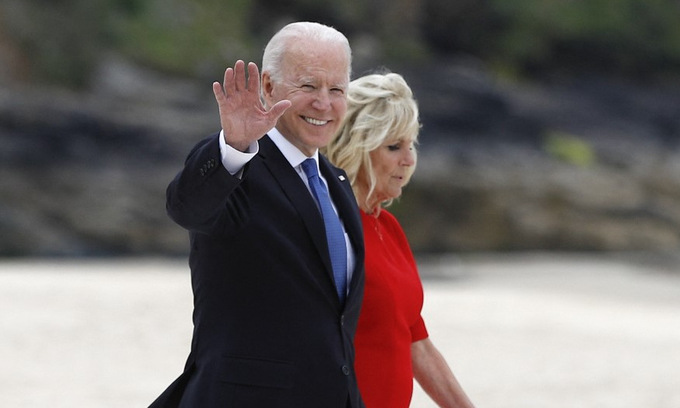 Vợ chồng Biden bên lề hội nghị thượng đỉnh G7 tại Cornwall, Anh, hôm 11/6. Ảnh: AFP.