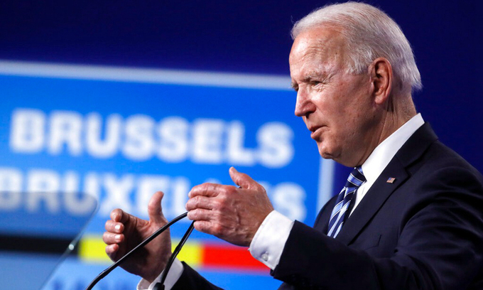 Tổng thống Mỹ Joe Biden phát biểu tại hội nghị thượng đỉnh NATO ở Brussels hôm 14/6. Ảnh: AP.