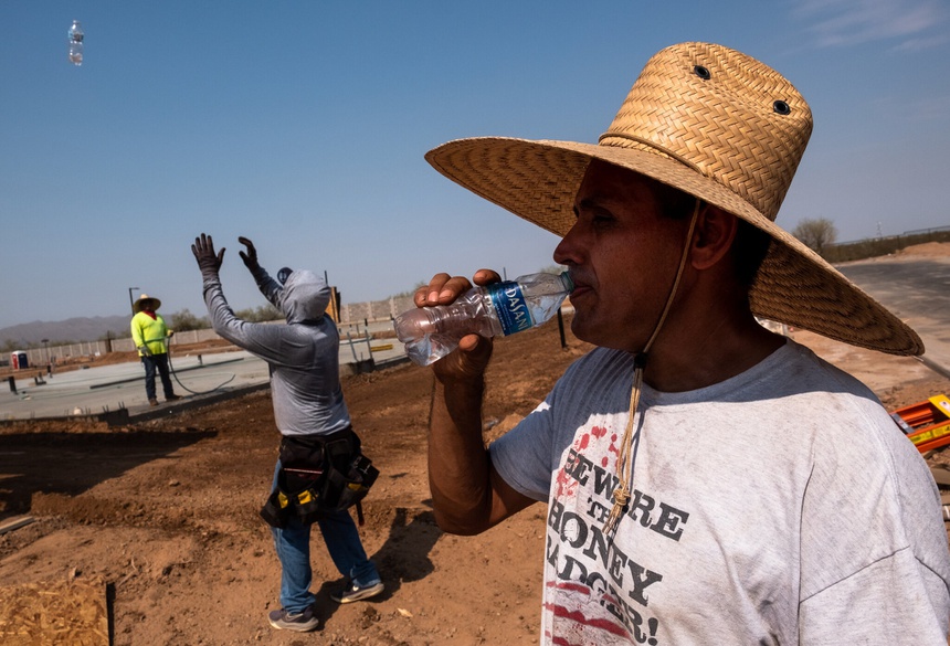 Một công nhân xây dựng làm việc trong nắng nóng gay gắt ở Phoenix. Ảnh: New York Times.