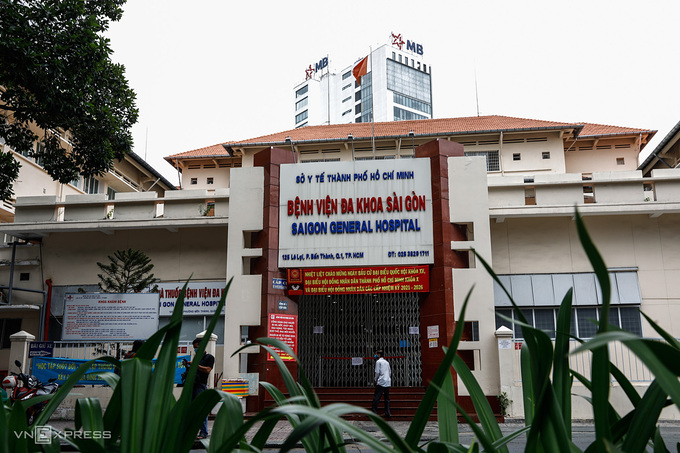 Bệnh viện Đa khoa Sài Gòn hôm nay ngưng nhận bệnh, sau khi ghi nhận 5 ca dương tính nCoV đến khám, chiều 21/6. Ảnh: Hữu Khoa.