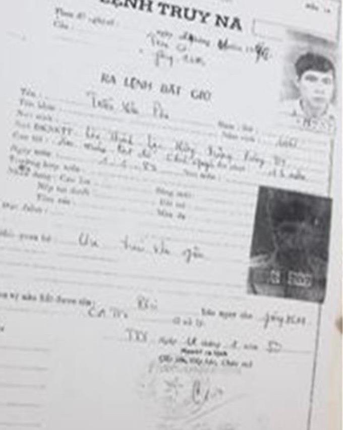 Lệnh truy nã đối tượng Trần Văn Phi. Ảnh do công an cung cấp