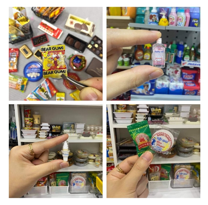 "Các đồ chơi mini mình có đủ loại từ hoạt hình cho đến tả thật theo từng chủ đề như tiệm bánh, đồ dùng bếp, đồ ăn, siêu thị, đồ dùng học tập, đồ make up, đồ nội thất... nói chung tất cả những gì trong cuộc sống hàng ngày được mô phỏng thành mô hình mình đều sưu tầm không giới hạn. Trong thời gian tới, khi thấy những món nào hợp với chủ đề mình vẫn sẽ rinh về thêm", Quyên cười.