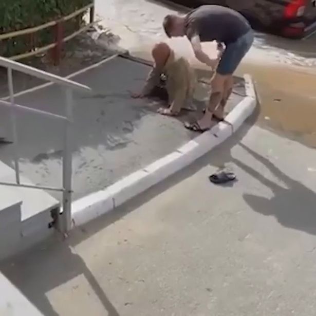 Người đàn ông bước đi trên vỉa hè, vài giây sau đột ngột biến mất. Tại Nga, một người đàn ông đang bước đi bên vỉa hè, bước vào một vũng nước ở phía trước, nhưng không ngờ đó là một rãnh sâu bị che khuất do mưa lớn.