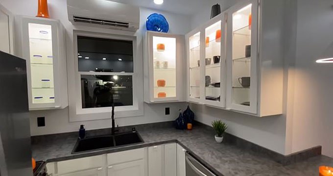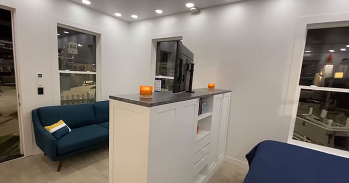 Những ngôi nhà kiểu này tuy nhỏ nhưng được thiết kế đầy đủ như một căn hộ studio với khu vực tiếp khách, nhà bếp, phòng phủ và phòng tắm đầy đủ. Với kích thước 6 m mỗi cạnh, tổng diện tích của ngôi nhà này chỉ khoảng 36 mét vuông.