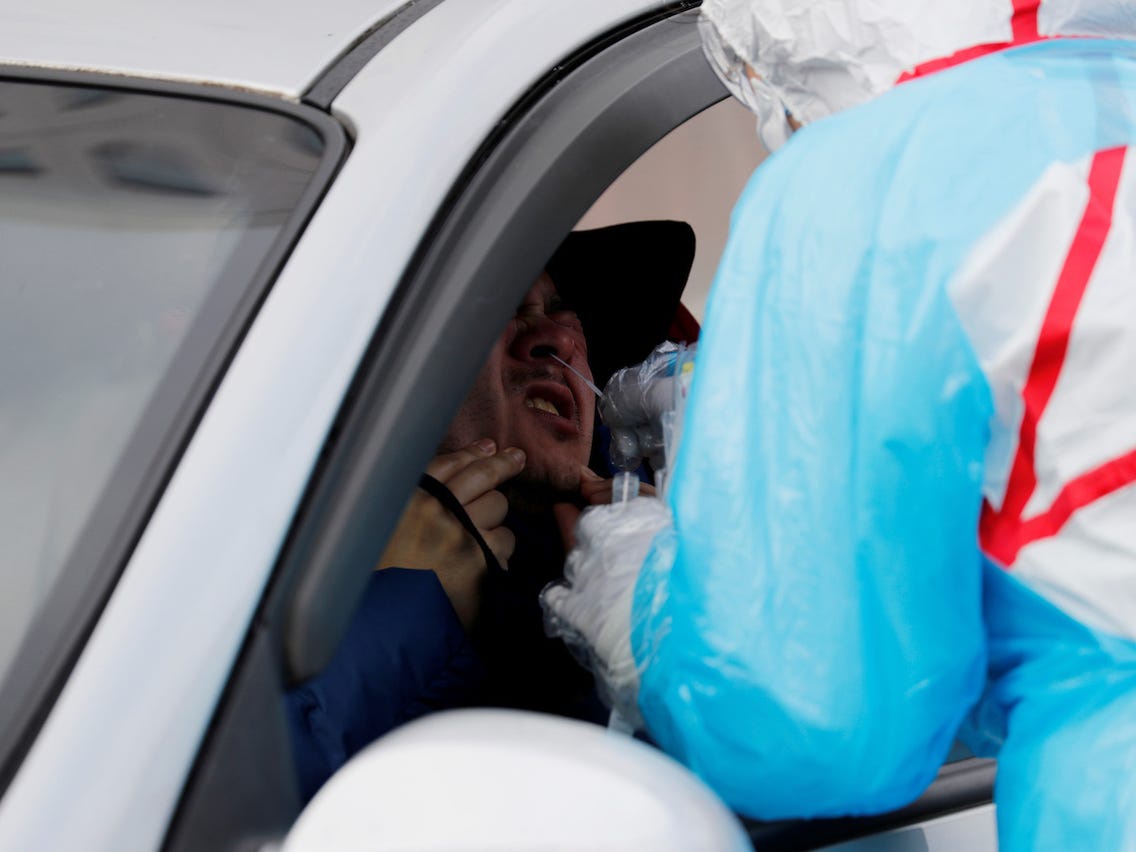 Trạm xét nghiệm được thiết lập theo mô hình đặc biệt ngay trên xe (drive-through). Ảnh: Reuters.
