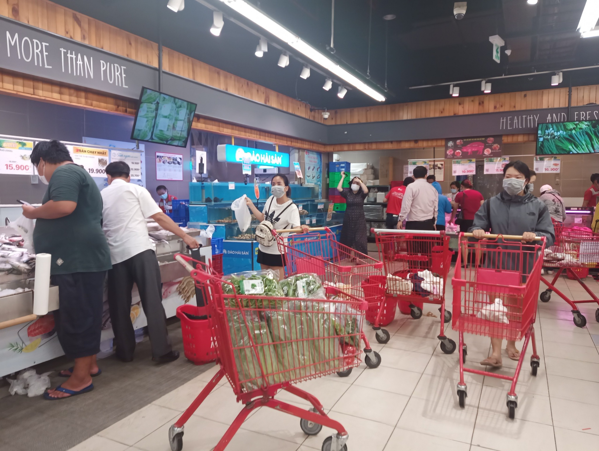 Đại diện hệ thống siêu thị VinMart và cửa hàng VinMart+ cho biết cho đến chiều nay, lượng khách hàng đến mua sắm trực tiếp tại siêu thị và cửa hàng tăng khoảng 20% so với ngày bình thường, lượng đơn đặt hàng online cũng tăng trên 50%.