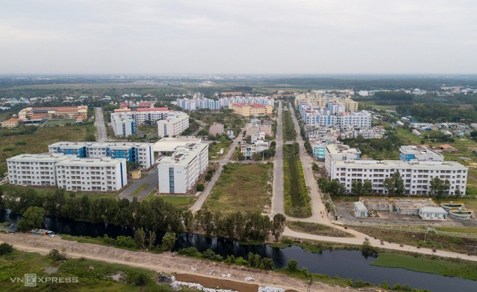 Khu tái định cư Vĩnh Lộc B, huyện Bình Chánh nhìn từ trên cao tháng 12/2017. Ảnh: Quỳnh Trần.