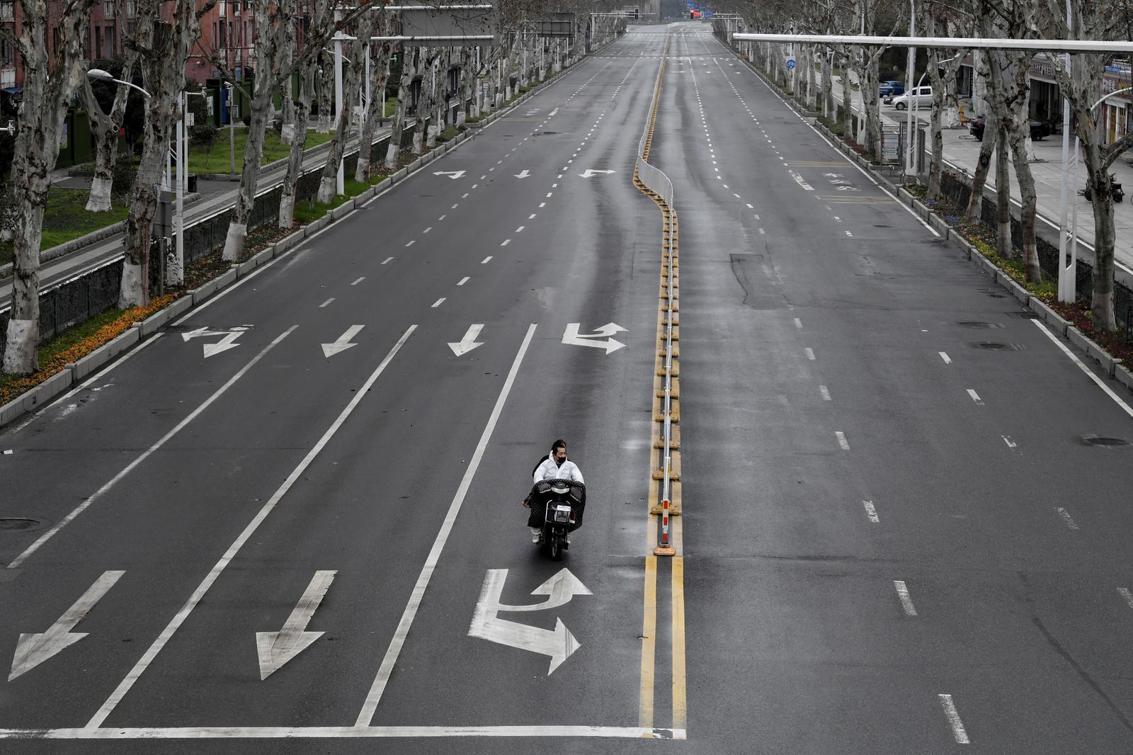 Một người lái xe máy điện vào ngày 3/3/2020 tại Vũ Hán, tỉnh Hồ Bắc, nơi từng là tâm dịch Covid-19 của Trung Quốc. Ảnh: Reuters.