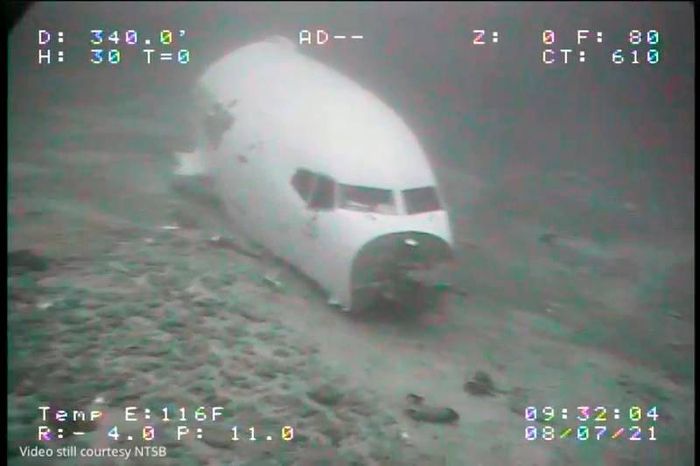 Xác máy bay nằm dưới độ sâu 130 m, rất khó để các thợ lặn có thể xuống kiểm tra. Vì thế, lực lượng chức năng sử dụng một tàu ngầm điều khiển từ xa để ghi lại những hình ảnh dưới đáy biển nơi có thân, mảnh vỡ máy bay. Được biết, chiếc Boeing 737 này có 46 năm tuổi đời và các nhà điều tra nghi ngờ đây có thể là nhân tố khiến động cơ máy bay gặp trục trặc.