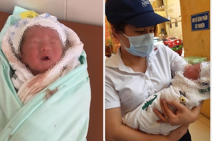 Kiểm tra sức khỏe, nhân viên y tế xác định bé trai mới sinh không lâu, cuống rốn vẫn chưa khô, tã lót vẫn thấm dịch.
