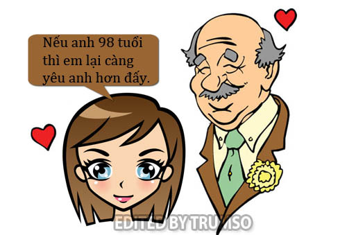 - Em yêu! Tuổi tác của chúng ta chênh nhau quá nhiều, em có thật lòng yêu anh không?