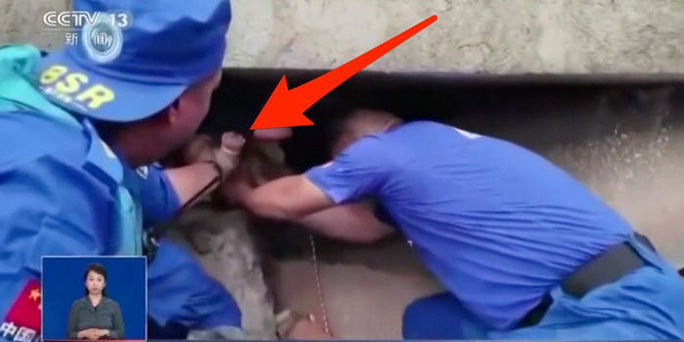 Đoạn clip giải cứu bé gái khoảng 3, 4 tháng tuổi được chia sẻ rộng rãi tại Trung Quốc. "Tôi nghe thấy tiếng em bé và vào lúc đó đội cứu hộ cũng vừa đến, kịp thời giải cứu cô bé. Bé đã được mẹ đưa đến nơi cao hơn" - một thành viên trong gia đình nói với tờ Southern Metropolis Daily.
