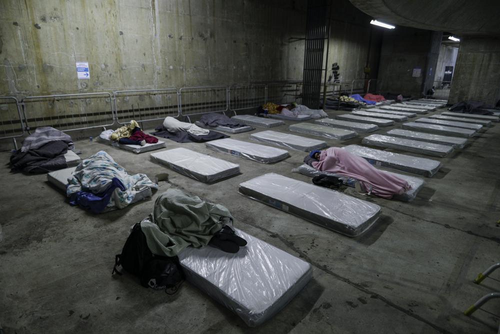 Những người vô gia cư nằm trên nệm do chính phủ đặt bên trong ga tàu điện ngầm tại bang đông dân nhất, Sao Paulo, vào sáng sớm ngày 30/7. Chính quyền bang hôm 29/7 tặng 7.500 chiếc chăn và 1.000 túi ngủ cho các tổ chức giúp đỡ người vô gia cư, biến một ga tàu điện ngầm thành nơi trú ẩn có sức chứa 400 người.