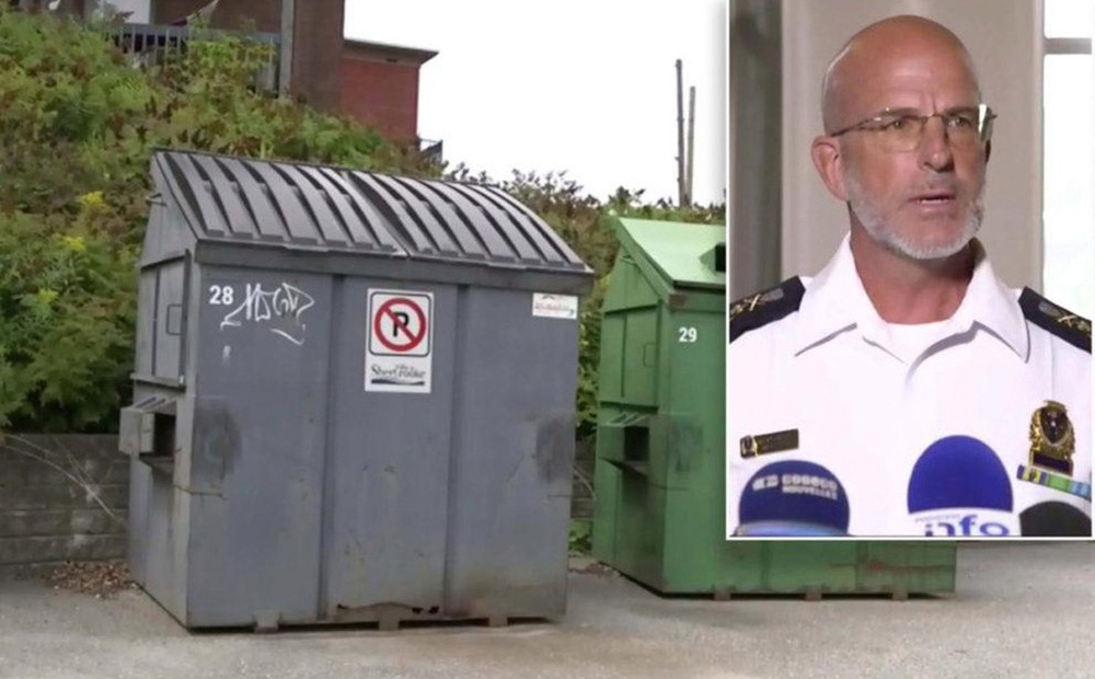 Nhóm nhân viên cứu hộ tại hiện trường sau đó quyết định bỏ thứ mà họ nghĩ là ma-nơ-canh trong một thùng rác tại Sở Cảnh sát Sherbrooke.