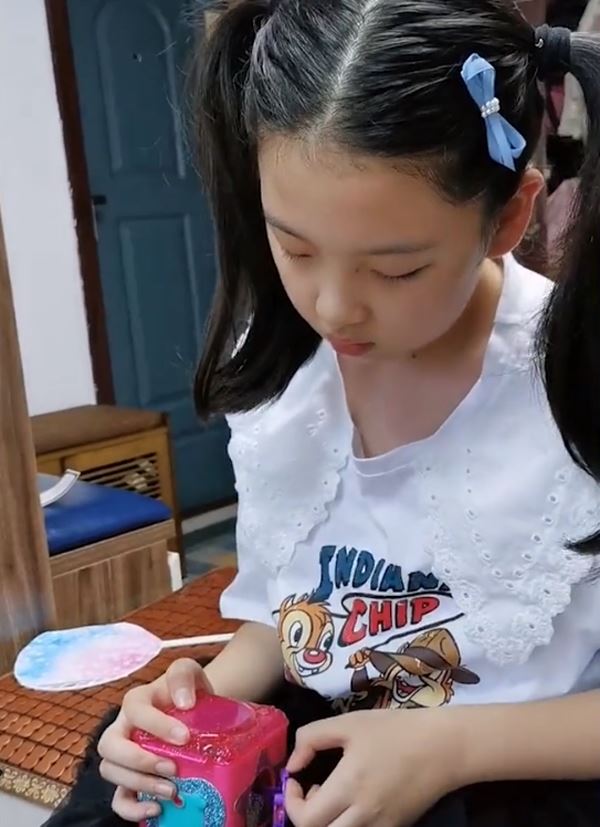 Tiếp đến, khi cô bé đang cầm quạt phe phẩy, thầy giáo liền cà khịa: 'Có học sinh ở nhà rất nóng nảy, hãy nhớ tâm tĩnh vạn sự yên'. Lúc này, cô bé nghiêm mặt đặt cái quạt sang một bên.