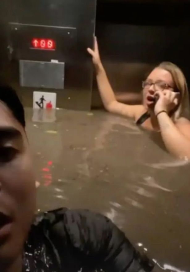 Họ bước vào thang máy lúc khoảng 22h theo giờ địa phương. Khi thang máy xuống đến sảnh, nước tràn qua lỗ thông hơi vào thang máy trong khi cửa thang máy chưa mở ra.