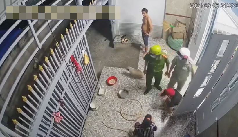 Trước sự việc quá bất ngờ, chủ nhà ngơ ngác nhìn hai thanh niên lạ mặt và chưa hiểu chuyện gì đang xảy ra. Chỉ vài giây sau đó, có 2 chiến sĩ công an dừng lại trước cổng, thấy có điểm bất thường nên 2 chiến sĩ công an đã đi vào bên trong và phát hiện thấy 2 thanh niên.