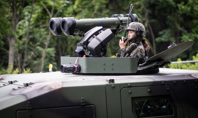 Một nữ quân nhân tham gia tập trận tại Inje, Hàn Quốc, hồi tháng 7/2020. Ảnh: Reuters.