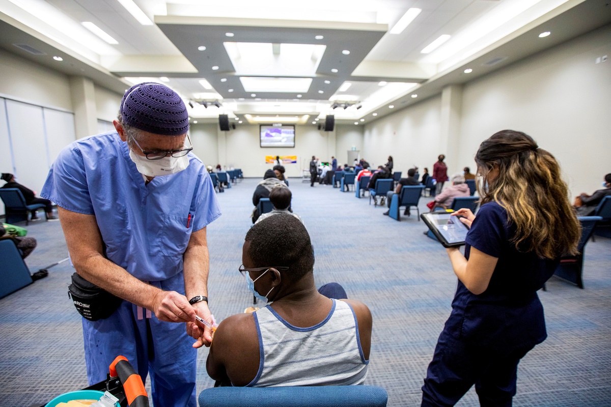 Một điểm tiêm chủng Covid-19 ở Toronto, Ontario, Canada ngày 4/5. Ảnh: Reuters.
