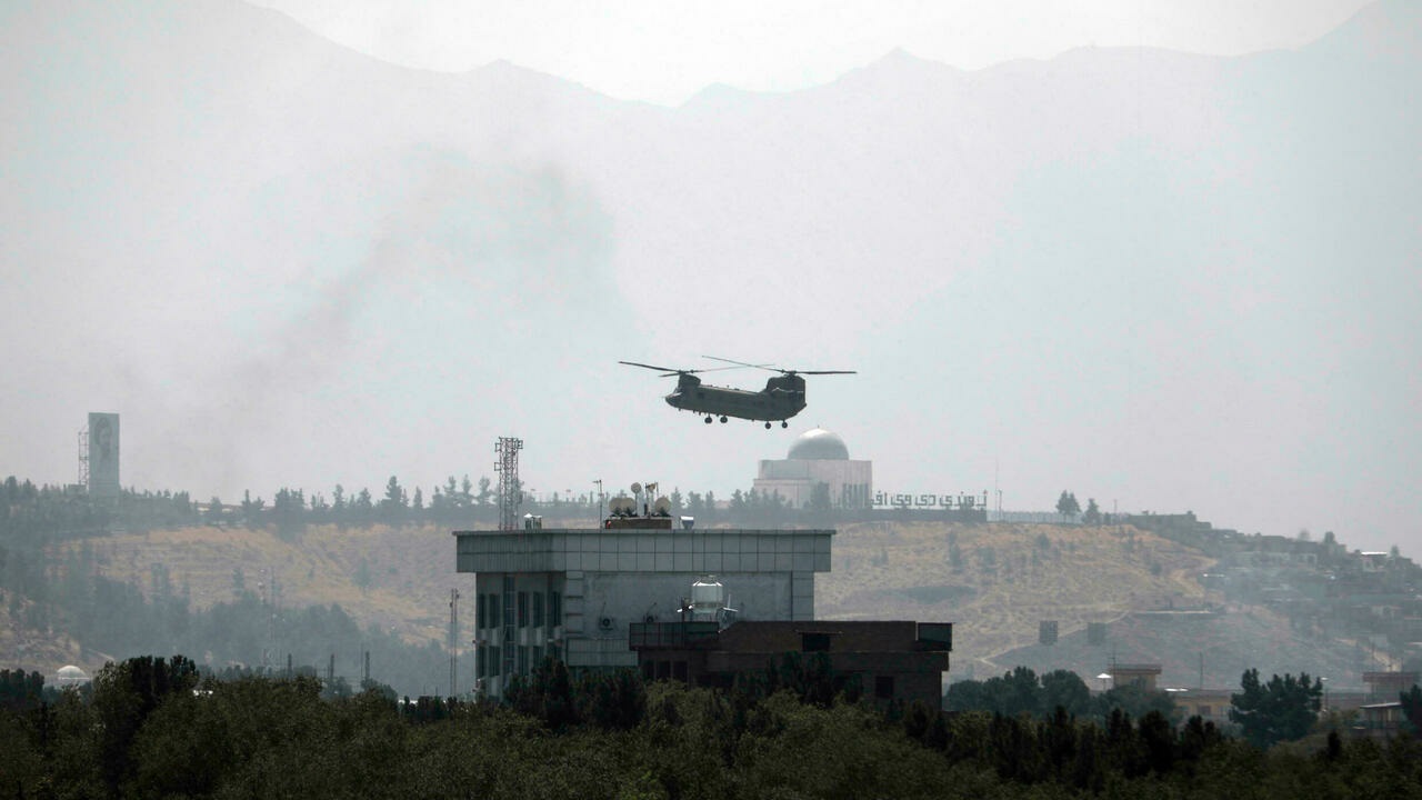 (Ảnh minh họa) - Trực thăng của quân đội Mỹ bay phía trên đại sứ quán Mỹ ở Kabul, ngày 15/08/2021 trong khi Washington đang đưa người di tản khỏi Afghanistan. AP - Rahmat Gul