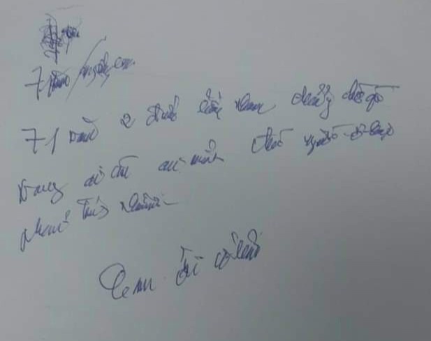 Bức thứ được ông L. gửi cho bà Â. sau khi tỉnh lại. Ảnh: BSCC.