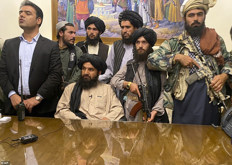 Lãnh đạo cấp cao Taliban ngồi vào ghế Tổng thống tại dinh tổng thống ở Kabul ngày 15.8.