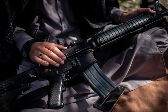 Một chiến binh Taliban cầm trên tay khẩu súng trường do Mỹ sản xuất.