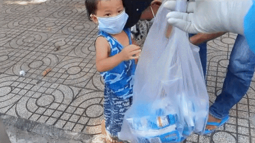 Những ngày đại dịch Covid-19 hoành hành, nghĩa cử ấy vẫn được tiếp diễn trong lòng thành phố vắng vẻ. Và có những hồn nhiên vẫn lớn lên nhờ sự cưu mang của người dưng, như em bé tung tăng chạy ra nhận cơm từ thiện mỗi ngày này. Em vừa nhảy chân sáo vừa hát líu lo, nhận được cơm là vội vã cầm về đưa cho mẹ.