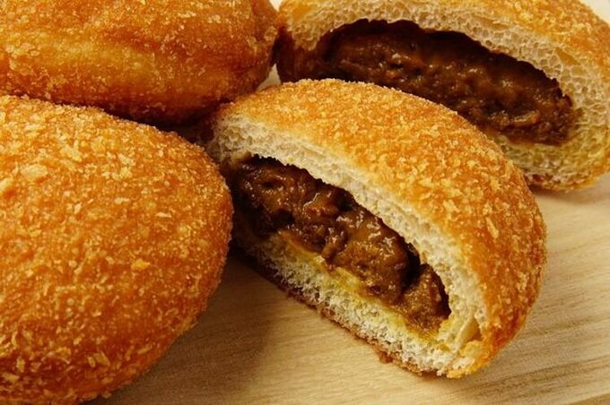 Đây là loại bánh mì cà ri, được chiên trong nồi ngập dầu để tạo ra độ giòn rụm của vỏ bánh, vị mềm của nhân. Kare được yêu thích ở xứ sở mặt trời mọc đến mức Nhật Bản tạo hẳn ra một nhân vật siêu anh hùng mang tên loại bánh này, Karepanman. Nhân vật này chuyên chống lại những kẻ phản diện bằng cách bắn ra các luồng cà ri nóng như lửa đốt. Ảnh: Favy Japan