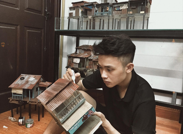 Đó là động lực khiến câu làm tiếp mô hình những ngôi nhà xập xệ liền kề. Mô hình này như thành công bước đầu của nam sinh viên khi được cộng đồng mạng chia sẻ rộng rãi cả trong và ngoài nước. “Đây như một bước đệm rất lớn để em tạo ra một sản phẩm khác mô phỏng dãy nhà trên sông xưa”, Dương cười nói.