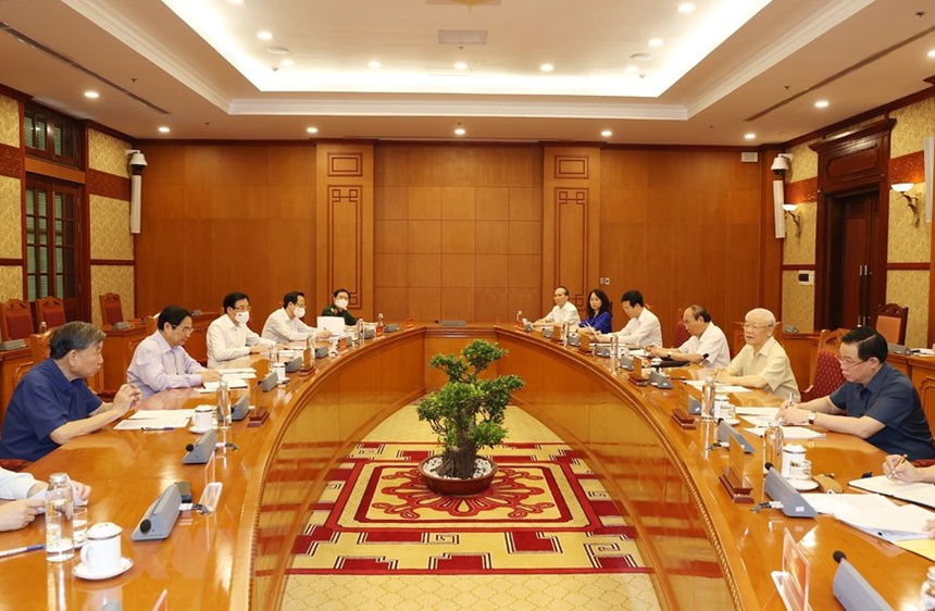 Ngày 24/8, Tổng bí thư Nguyễn Phú Trọng chủ trì cuộc họp của lãnh đạo chủ chốt để nghe Ban cán sự đảng Chính phủ báo cáo về tình hình dịch bệnh và công tác triển khai các biện pháp cấp bách phòng, chống dịch Covid-19 tại TP.HCM và các tỉnh phía Nam.