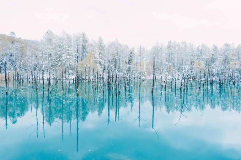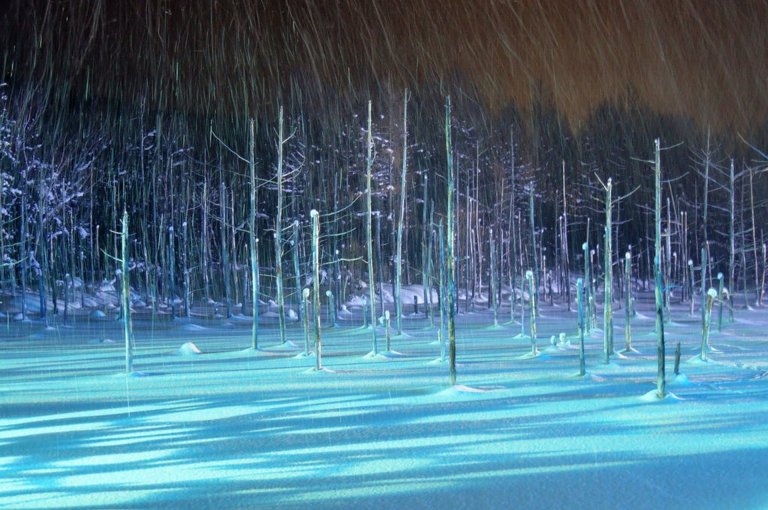 Biei, Nhật Bản là nơi có một hồ nước màu xanh ngọc bích tuyệt đẹp. Hồ xanh Shirogane được tạo ra sau một vụ phun trào núi lửa năm 1988. Giống như các hồ khoáng phát sáng phát sáng ở Yellowstone, hoạt động bơi lội ở hồ xanh dường như là không thể bởi nước vô cùng độc hại với con người.