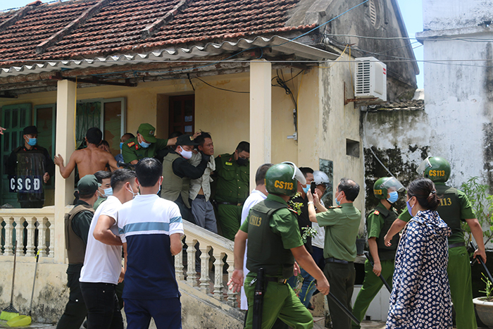 Đại tá Phạm Văn Long, Giám đốc Công an tỉnh Nam Định đã trực tiếp đến hiện trường chỉ đạo các lực lượng cảnh sát, giải cứu các nạn nhân đang bị giữ trái pháp luật. Ưu tiên nhất vẫn là công tác vận động, thuyết phục nhưng đối tượng vẫn không cho con gái ra ngoài và cố thủ trong nhà.
