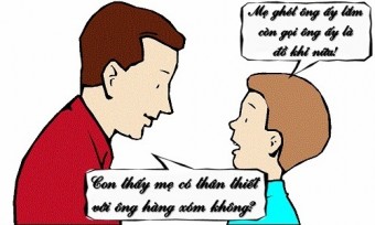 - Con ở nhà có thấy mẹ thân thiết với ông Tèo hàng xóm không?
