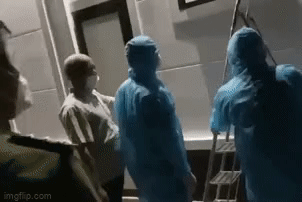 Cuối clip, nhân viên y tế buộc phải trèo cửa, vào tận phòng cưỡng chế. Anh lôi người phụ nữ ra ngoài và cuốn bao tải che chắn cho chị, đưa lên xe đi cách ly.