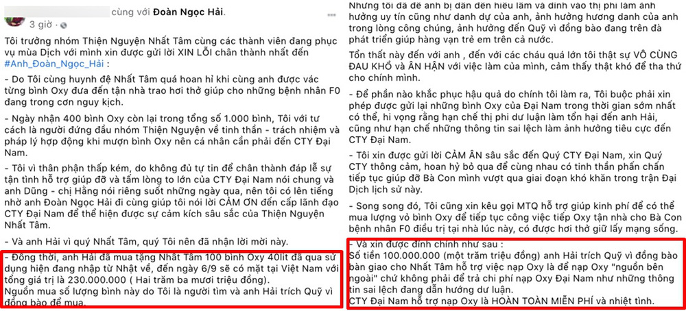 Người này cũng công bố chuyện ông Đoàn Ngọc Hải mua tặng nhóm 100 bình oxy loại 40 lít đã qua sử dụng, hiện đang được nhập từ Nhật về. Dự kiến, đến ngày 6/9 số bình oxy này sẽ có mặt tại Việt Nam với tổng giá trị là 230.000.000 (hai trăm ba mươi triệu đồng).