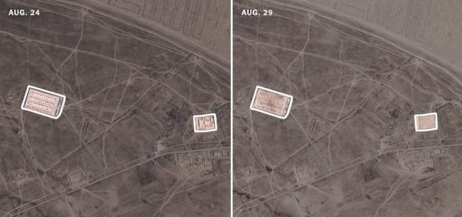 Căn cứ Đại bàng trước và sau khi phá dỡ (Ảnh: Planet Labs)