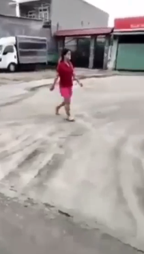 Lực lượng chức năng phải dùng loa, liên tục yêu cầu người phụ nữ quay lại nhưng chị vẫn đủng đỉnh đi thẳng.