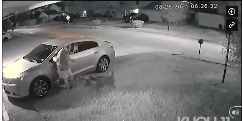 Vụ việc xảy ra vào khoảng 6h30 sáng 26/8 và được camera an ninh ghi lại. Người đàn ông gốc Á đi dạo trong khu Queens Retreat Drive thì bị 2 con pitbull thả rông lao tới tấn công ngay ở sân trước nhà của Elmer Levigne - cựu phó văn phòng cảnh sát trưởng quận Harris. Người đàn ông cố gắng xua đuổi 2 con chó dữ nhưng bất thành.