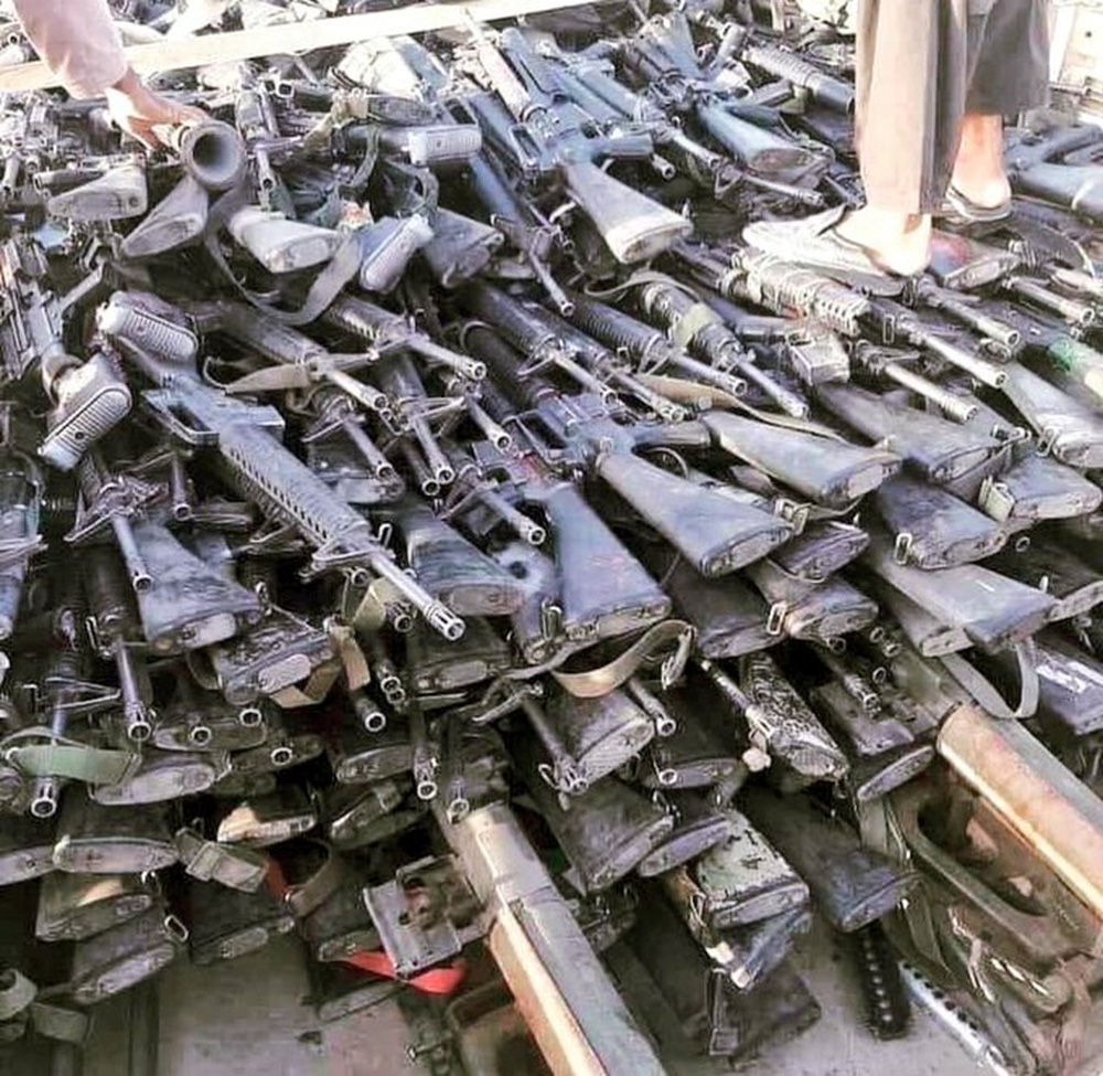 Một lượng lớn vũ khí hạng nhẹ mới thu được từ tay Taliban đã được NRF phân bổ cho các tân binh của họ.