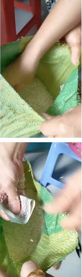 - "Bao gạo mới mua từ nơi sản xuất thì làm sao có lỗ hổng để nhét tiền vào được nhỉ?"
