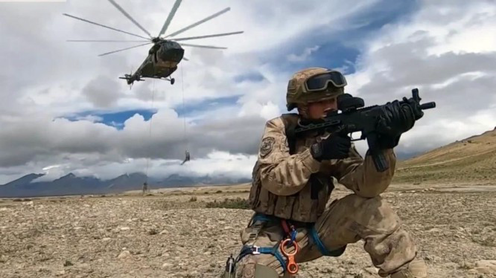 Trong đoạn băng về cuộc tập trận được đăng tải trên website chính thức của tờ PLA Daily hôm đầu tuần này, một số đơn vị thuộc Quân khu Tây Tạng, quân đội Trung Quốc (PLA) được trông thấy đang tập trận giả định đánh chiếm một trung tâm chỉ huy của địch nằm ở độ cao 4.700 m.