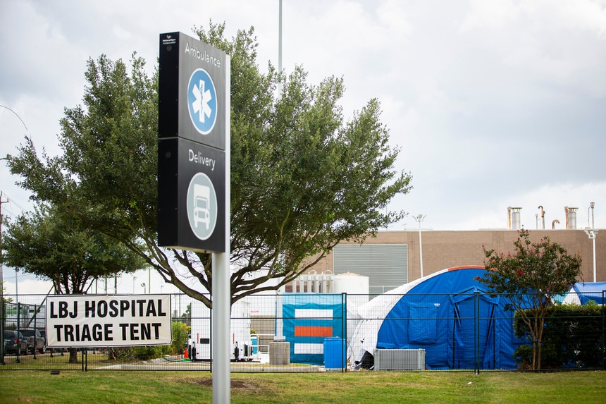 Một chiếc lều tạm trong Bệnh viện Lyndon B. Johnson ở thành phố Houston. Ảnh: New York Times.
