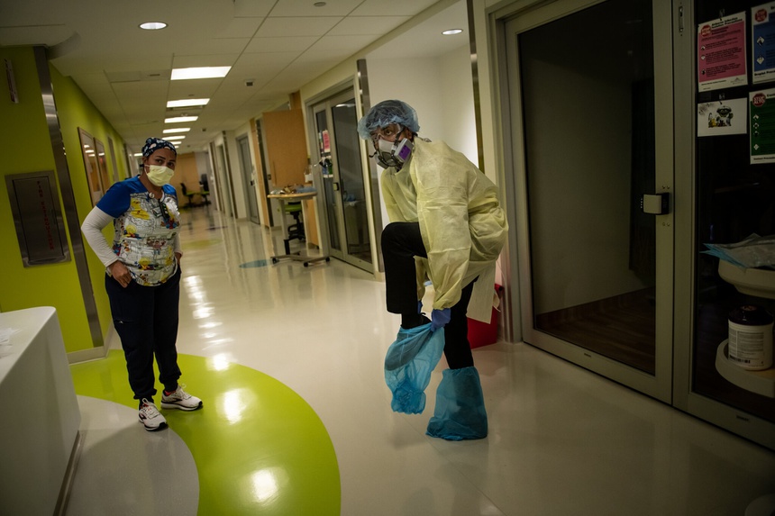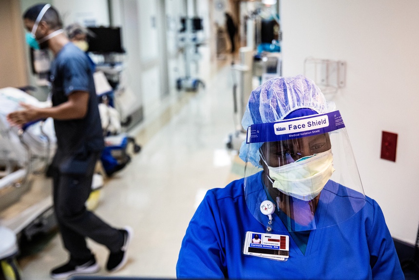 Một nhân viên y tá trong bệnh viện. Ảnh: New York Times.