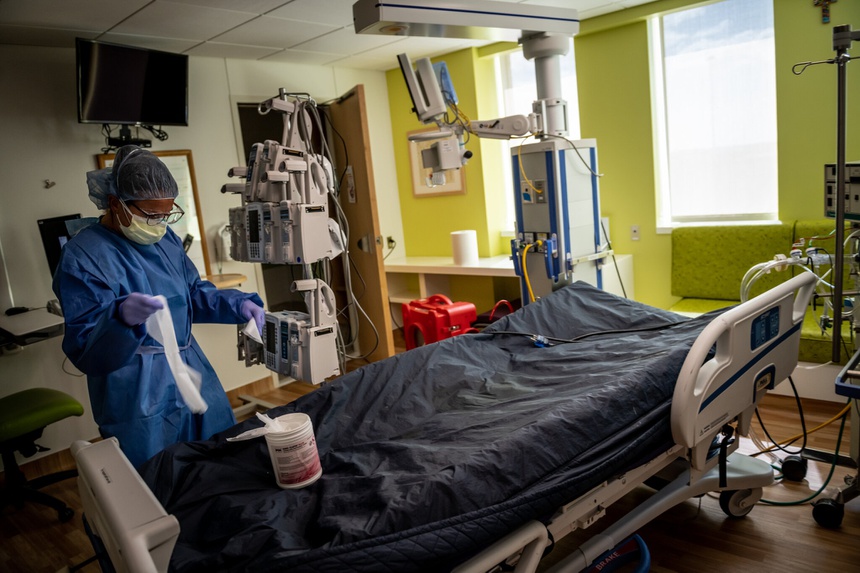 Gần đó, nữ y tá Anne Marie Baker đang dọn dẹp phòng bệnh. Một bệnh nhi mắc Covid-19 vừa tử vong trong căn phòng này. Theo cô Baker, trẻ dưới 12 tuổi chưa đủ điều kiện để tiêm vaccine nên nhóm đối tượng này có nguy cơ mắc bệnh cao.